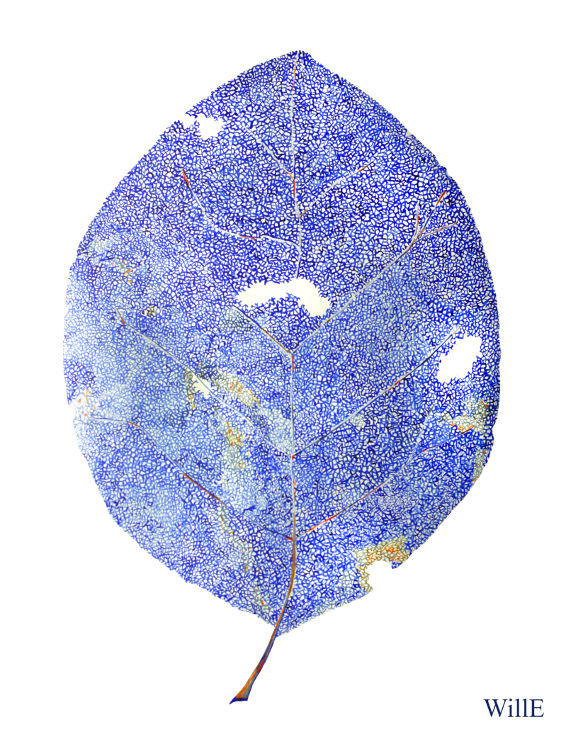 Blêd blauw, blad blauw. Acryl 63x63cm